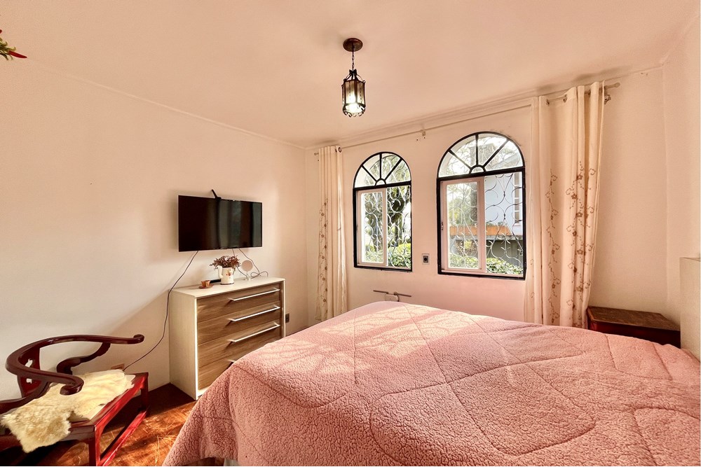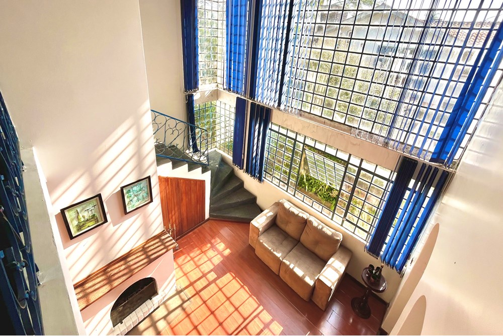 Para alcançar o segundo piso, o guarda-corpo e corrimão em ferro batido dão um toque rústico e aconchegante, conduzindo de forma harmoniosa à área íntima, com quatro dormitórios (uma suíte) com closet e mais um banheiro, todos com ótima orientação solar.